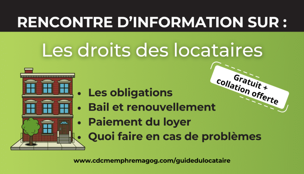 Collation et café offerts⚠️ Inscription recommandée – places limitées👉 Tous les détails ici : cdcmemphremagog.com/guidedulocataire